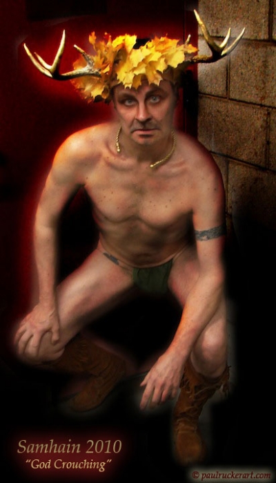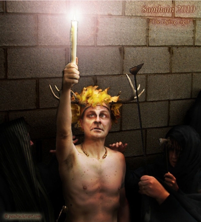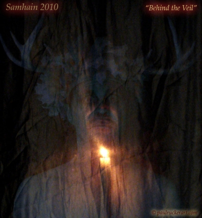 Samhain rituals often incorporate themes of contact with the Otherworld of the Dead/Ancestors/Fae, and/or with ancestral traditions in some fashion. This year’s theme focused on the dying of the Horned God of the Witches as a form of sacrifice, with the final image representing the God speaking from “beyond the veil” as a Primal Ancestor.